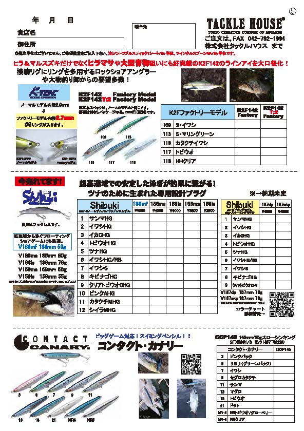 5.青物、ビッグゲームにK2Fファクトリー、SHIBUKI、コンタクト・カナリー