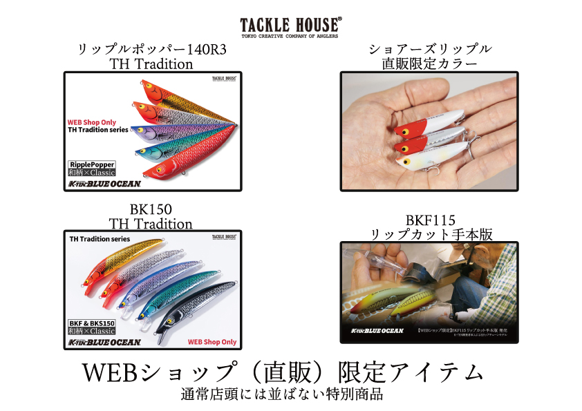 今週末のイベント 神奈川県の上州屋戸塚原宿店様にて開催されるソルトルアーフェスタ2025追加情報です。 10月4日土曜日のタックルハウスの参加は13時頃からと案内していましたが、 イベント限定アイテム等の販売は上州屋スタッフ様ご協力の元、イベント開始時刻の10時より通常通り行います。 タックルハウススタッフは13時以降の常駐となりますので、それ以前は上州屋スタッフ様のご案内に従ってお買い物をお楽しみください。 お支払いはメーカーブースではなく、店舗レジでの対応となります。 タックルハウス製品購入特典として非売品ステッカーを差し上げますので、清算後レシートをブース近くにいる上州屋スタッフ様にご提示ください。 イベント限定カラー2025年新色【ケイムラヘッドブラック】の販売予定アイテムに変更があります。下記アイテムを販売予定です。 K2F142 TKLM90 TKRP90リップルポッパー BKRP115faリップルポッパー FEED.SHALLOW128