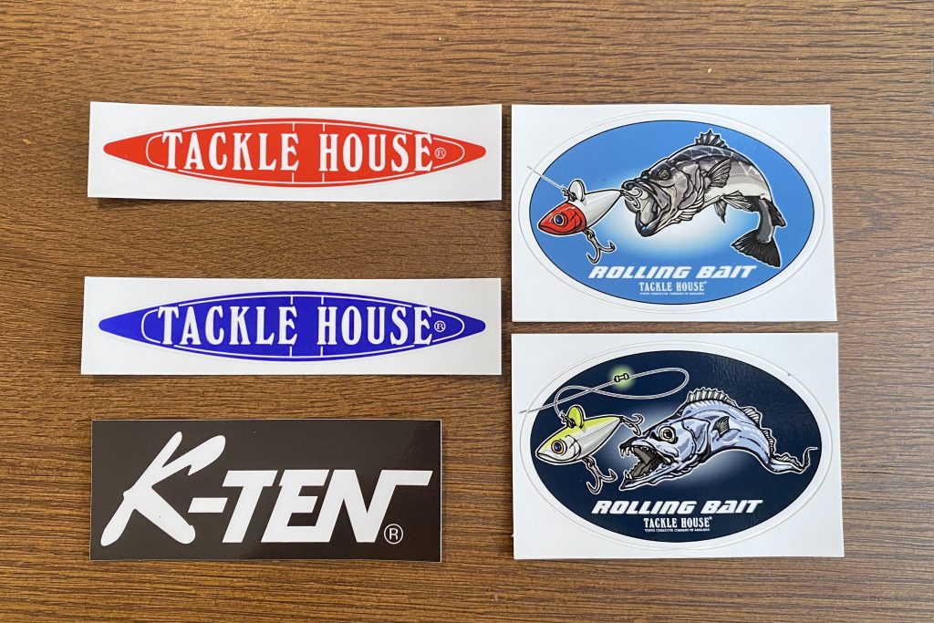非売品ステッカーは数年前から好評のタックルハウスカヌーロゴ(レッド)やロリベステッカーに加えて、この秋から初出しとなるカヌーロゴ(ブルーver) と黒バックのK-TENロゴステッカーを準備しています。