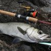 キャンペーン期間中にタックルハウスのルアーを使った(シーバス、ヒラスズキ)の釣果写真を撮る。