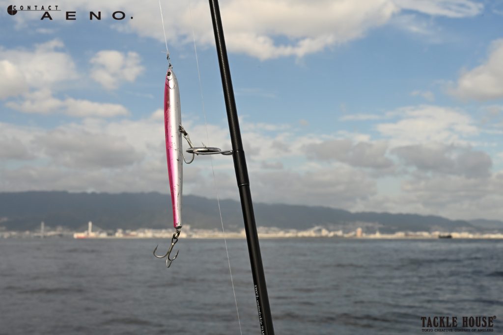 魚が中層から上を見ているときはロングキャストで広範囲にサーチがおすすめ、任意のレンジまで沈め、魚にルアーを見せてから横方向へジャーキング、このパターンでアタリが連発する状況はイーノの独壇場になる場合も。