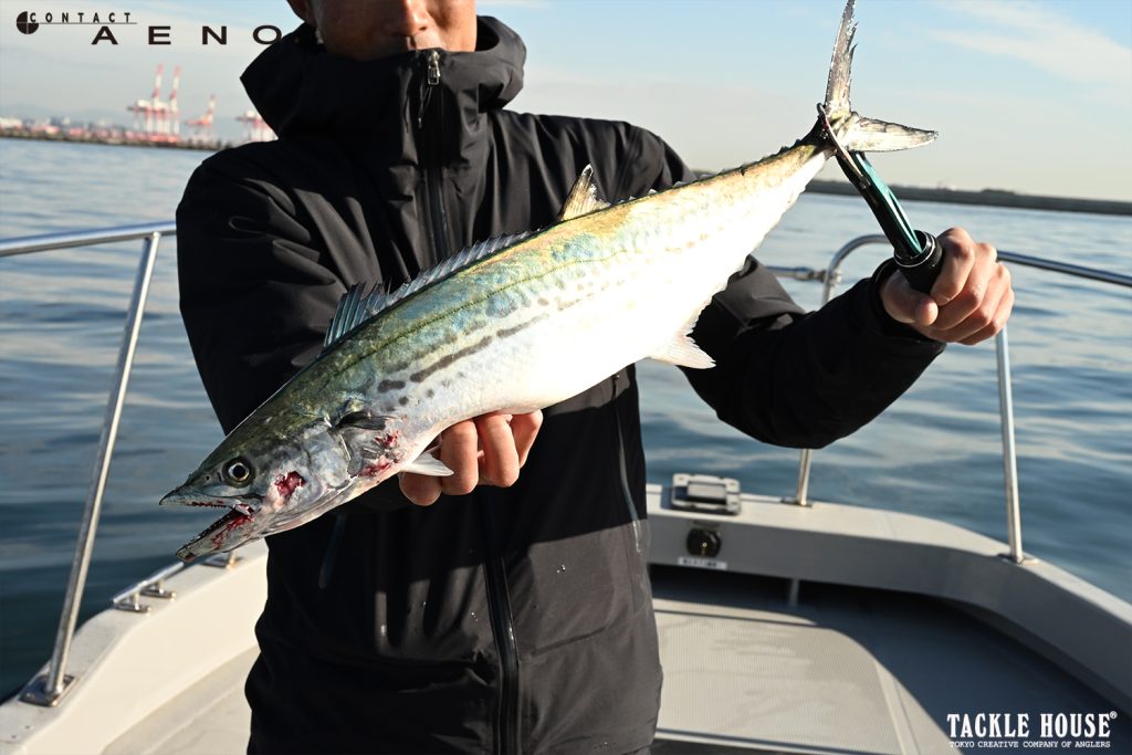 サワラ、サゴシゲームで面白いのはその日その時間帯でヒットパターンが変わること、ボトム付近でしかヒットしないこともあれば表層の場合もあります。速い動きが良かったり、スローなジャークに反応が偏ったりと状況にアジャストすることで確実に釣果が伸びます。キモはアクション中にラインテンションを一瞬「抜く」こと。