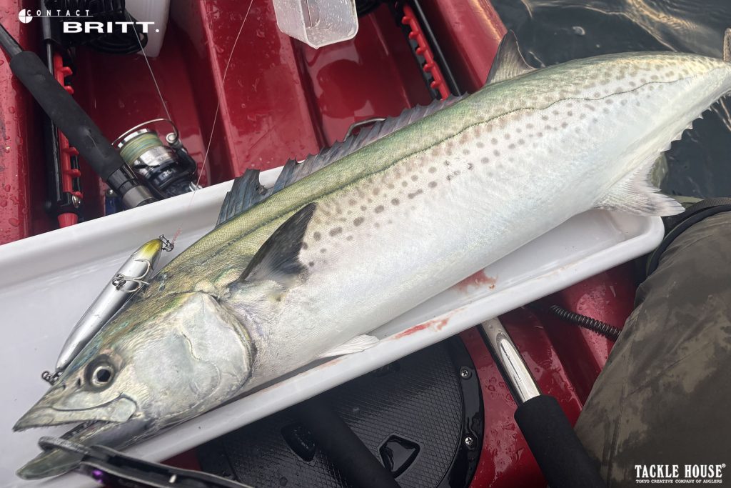 ロッドワークに制限があるカヤック上ではジャークしないくてもしっかり潜ってアクションしてくれるブリットやフィードポッパーは心強い味方です。特に120(121)サイズはカヤックフィッシングにドンピシャのサイズでカラーによってはマイクロベイトの状況でもしっかり食ってくれます。」