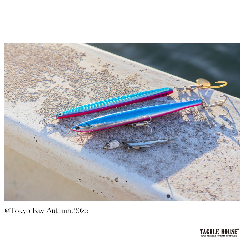 東京湾でも、水深25m以深や強風時にはブレードジグでなければ成立しない場面は少なからずありました。そんな時、実は【イーノパターン】検証の裏で試していたのが、【Pboyキャスティングジグ】。細長〜いフォルムが特徴のメタルジグで、サワラ向けにフック周りを調整してテストしていました。