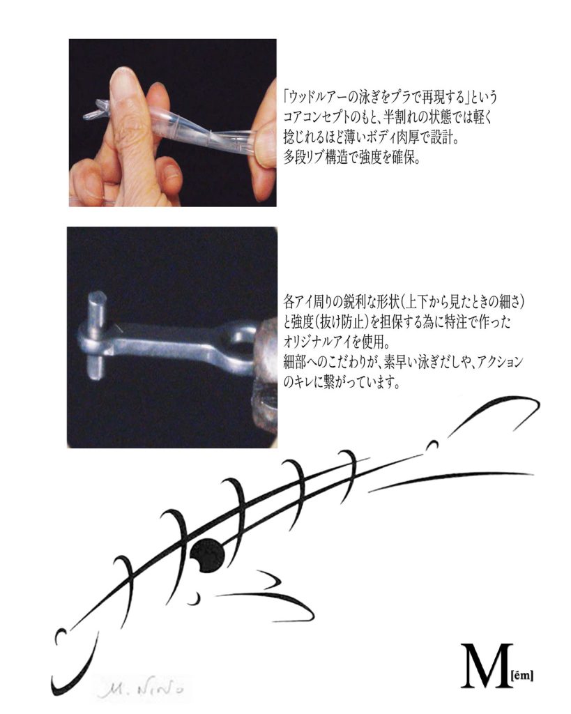 ですが、Mは軽量ミノーならではの普遍的な価値(繊細なアクション等)に重点を置き、開発、設計されました。