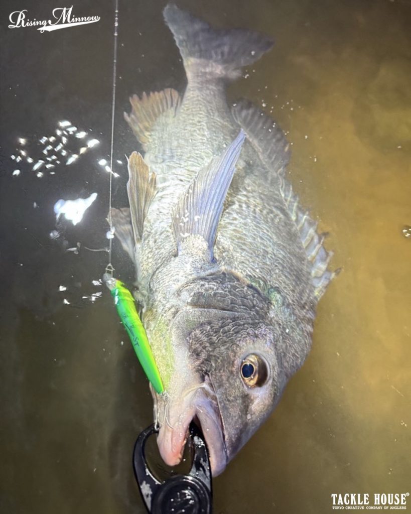 満潮から下げだしたタイミングで、高橋にマルスズキ、西形にクロダイが釣れてくれました。