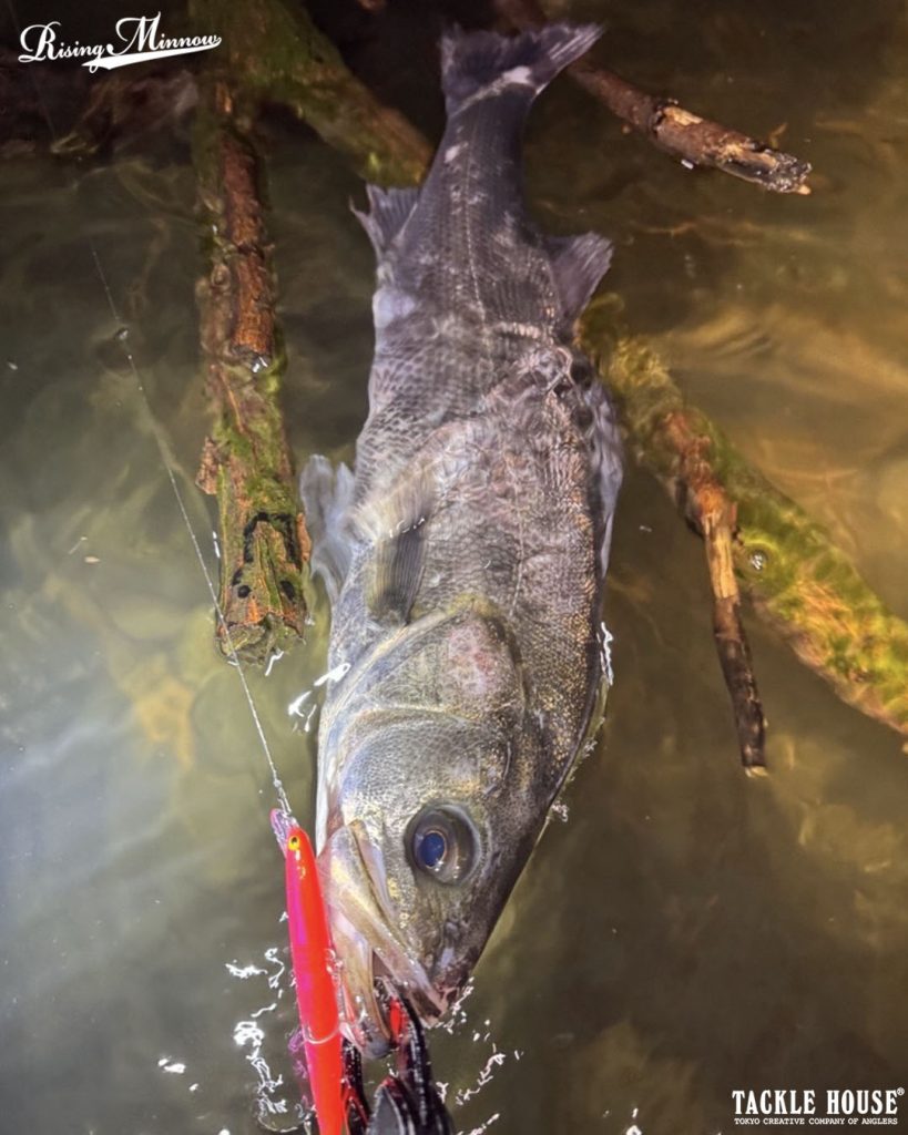 バチが大量に抜けすぎたり、バチが少量で差してくるスズキの数が少ない時に、引き波の誘いだけではアピール不足な事もありますが、ライジングミノー87は絶妙なテールスイングで、程よくルアーの存在をアピールしてくれます。