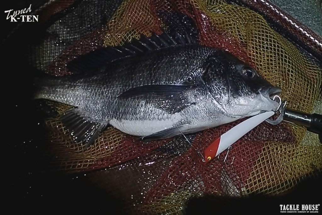 体高があり、お腹パンパンのクロダイ。もう産卵間近の個体かも知れません。ルアーをダウンクロスで引っ張ってくると追っかけ食い