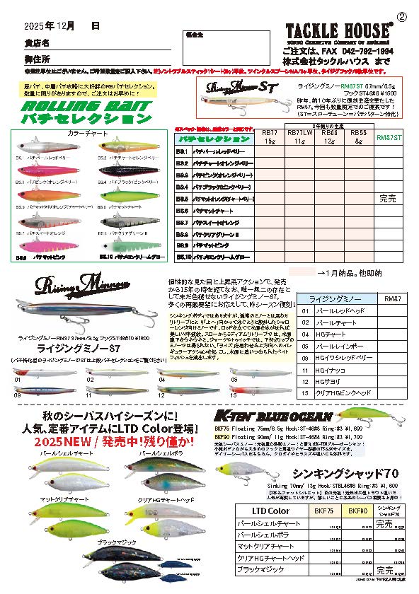 2.バチセレクション、ライジングミノー&秋シーバス限定カラー